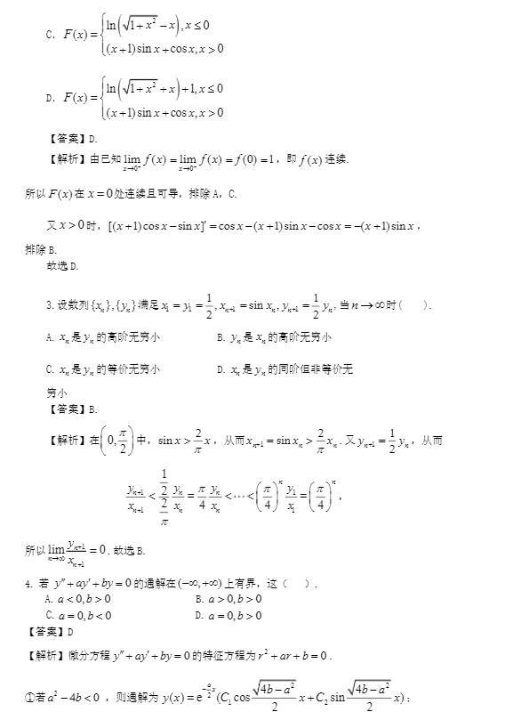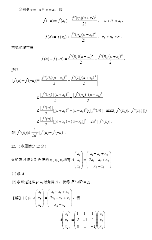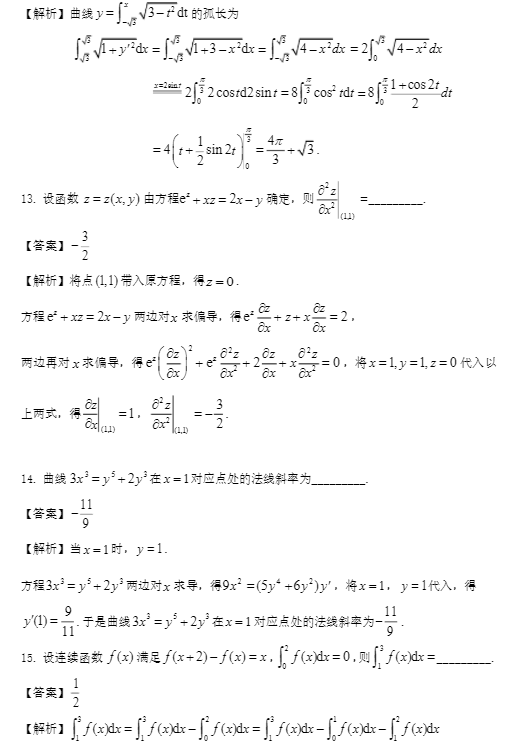 2023年全国硕士研究生招生考试数学(二)真题及解析